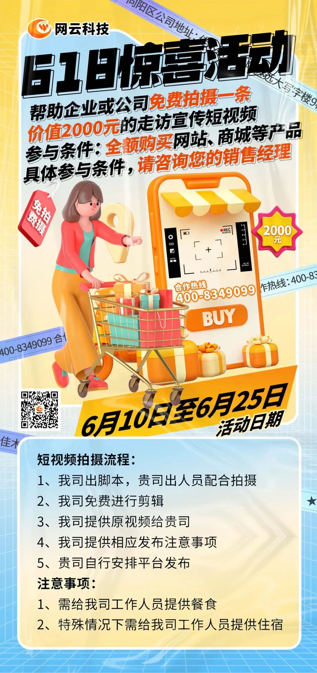 我們?yōu)榱私o企業(yè)解決這一問題難點,在6·18活動期間,特推出助力企業(yè)的活動-為新合作的企業(yè)免費拍攝一條走訪宣傳短視頻。